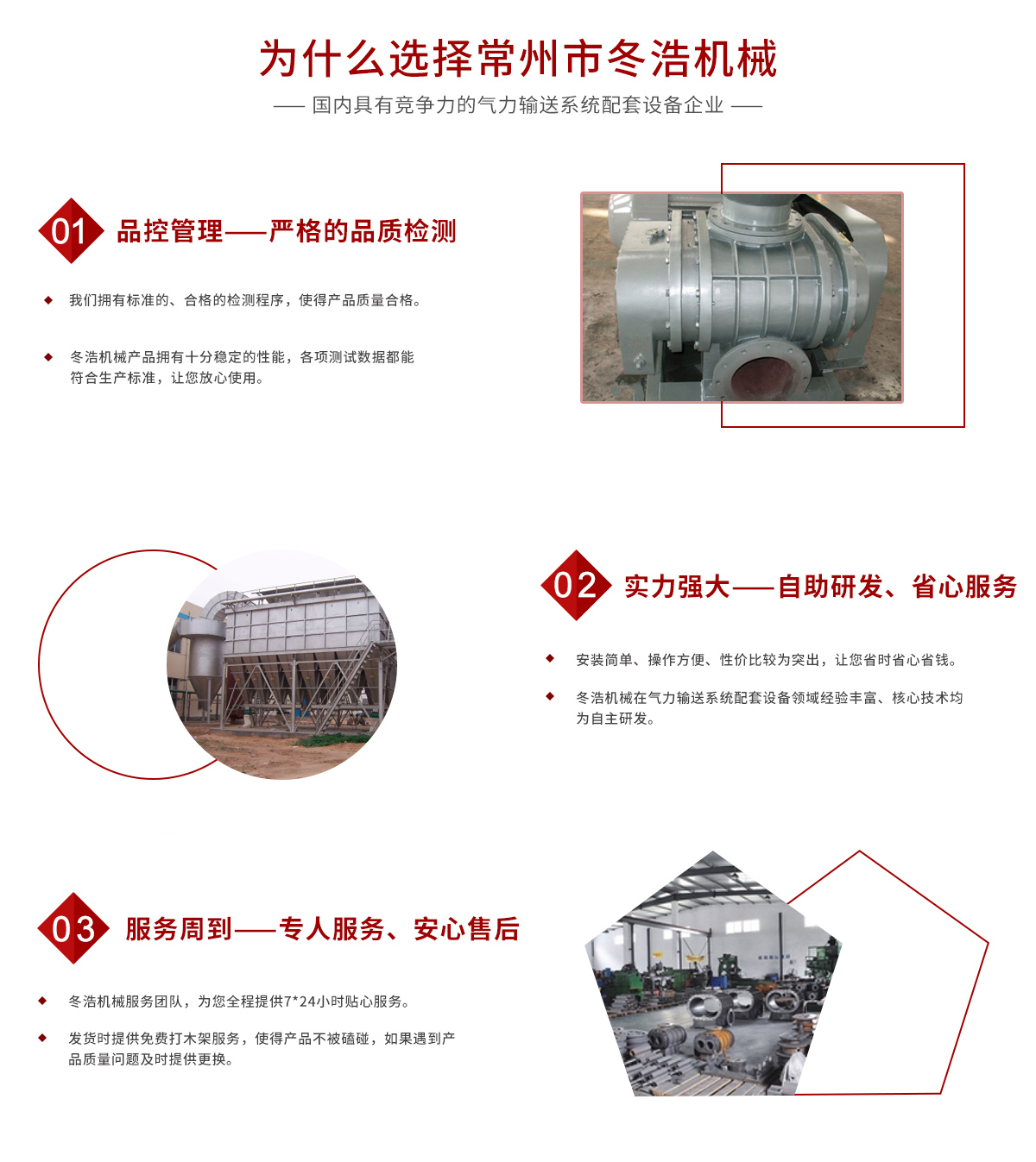 常州市冬浩機(jī)械有限公司占地面積5000平方米,擁有一支專業(yè)的科技研發(fā)團(tuán)隊和配備專業(yè)的生產(chǎn)設(shè)備。專業(yè)致力于氣力輸送系統(tǒng)配套設(shè)備的研發(fā)、生產(chǎn)及銷售。產(chǎn)品在實(shí)際應(yīng)用中不斷創(chuàng)新、不斷升級,現(xiàn)已對接實(shí)現(xiàn)自動化、智能化、人性化。實(shí)踐證明公司生產(chǎn)的吸糧機(jī)系列、高溫羅茨風(fēng)機(jī)系列、關(guān)風(fēng)機(jī)系列、氣力輸送設(shè)備系列、特殊工況訂制系列的產(chǎn)品被廣泛運(yùn)用于石油化工、油脂、化工干燥、除塵、冶金、環(huán)保、電子、煤炭、建筑、電力機(jī)械、糧食、飼料等行業(yè)。為解決輸送、搬運(yùn)等環(huán)節(jié)中節(jié)約大量的人力、財力;從而提高了生產(chǎn)效率。